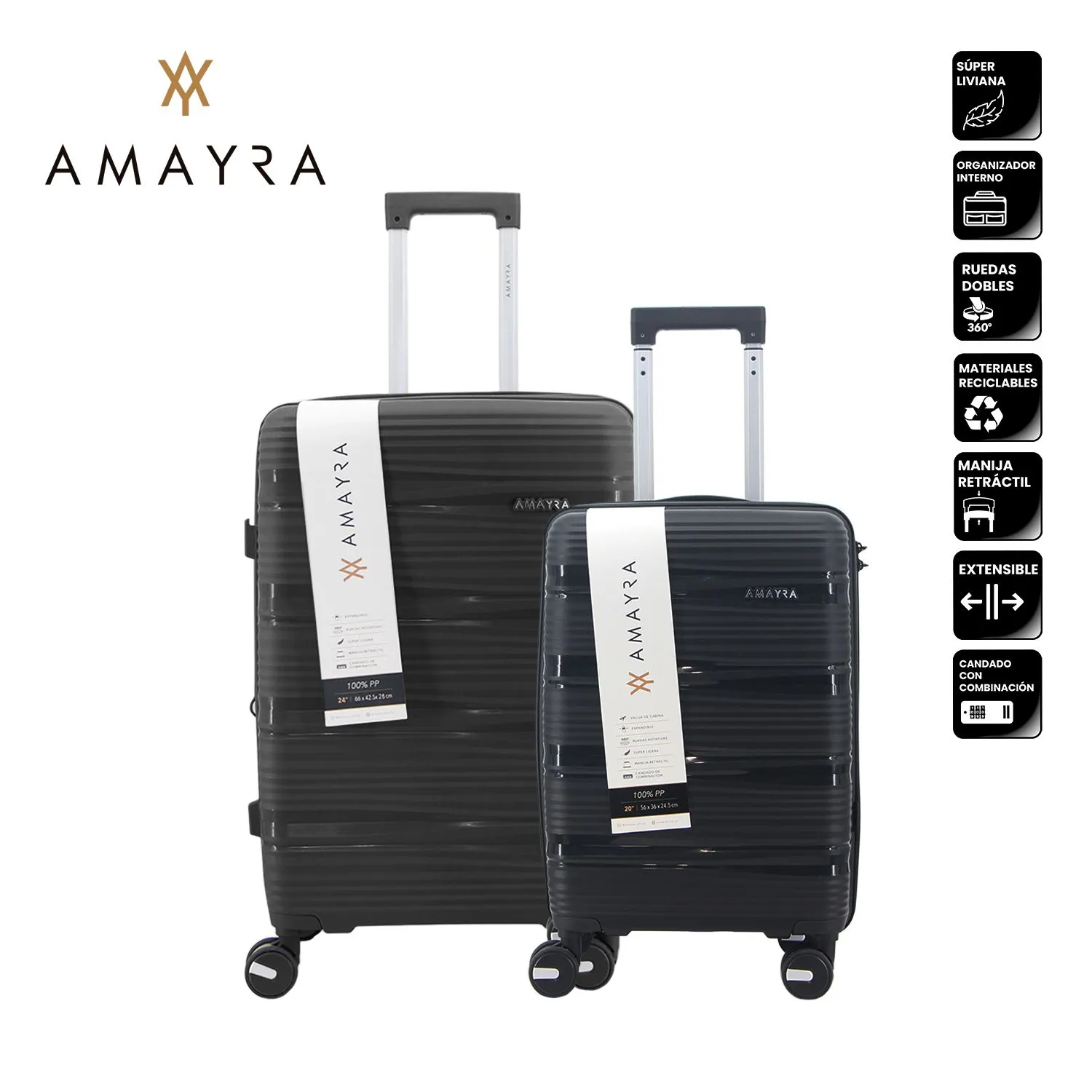 SET VALIJAS 20" 24" NEGRO AMAYRA